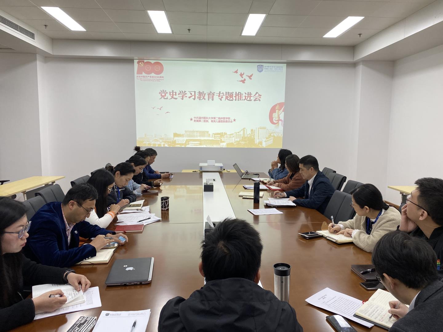 4月8日下午,我院在龙湾院区行政北楼三号会议室召开党史学习教育专题推进会。会议由医院党委副书记陈先建主持。宣传统战处、组织人事处、党政综合办、工会、团委、教学处等相关部门负责人共15余人参加了会议。陈书记对…