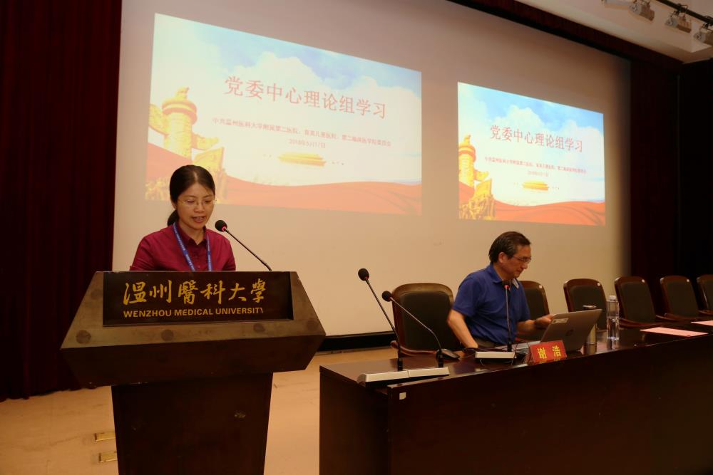 5月17日下午,我院举行了中心理论组学习暨党风廉政建设专题会议。会议邀请了中共温州市委原副秘书长、温州市委政研室原主任、温州市政府经济研究中心原主任谢浩作题为《十九大,伟大与深远》的主题报告。院党政领导班子成员、职能处长、学科(系)主任、科助理和护士长、党支部书记等300余人参加了会议。会议由院党委副书记许慧清主持。