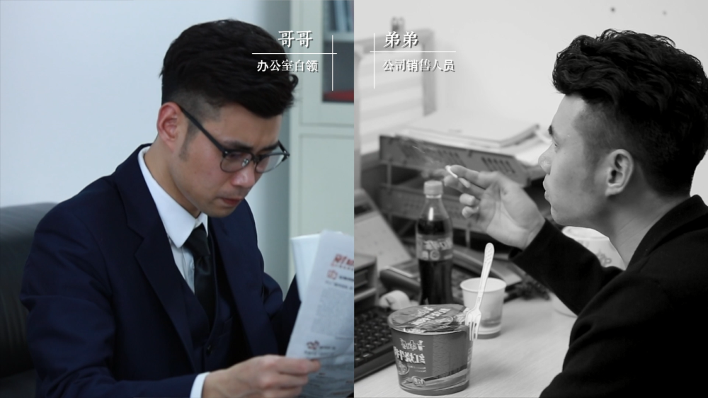 他一人分饰两角,没有特效化妆,没有一句台词,靠着衣服、发型、配饰“硬生生”演出了两个不同的角色。连出演的所有衣服、配饰都是他根据剧情自己琢磨了之后准备的,甚至拍摄需要的“家”、“家人”都是自己借来的。身兼服装师、道具师、化妆师数职,还要演两个角色,他可以算得上是最忙主演了。