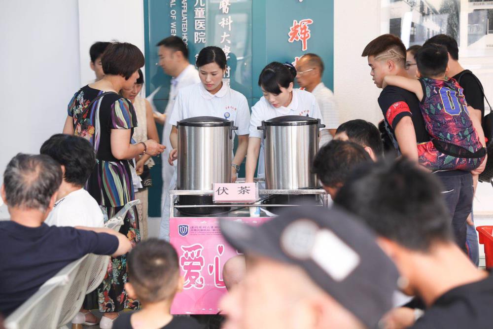 自2016年开始,每天上午9点-10点和下午2点-3点时段,护士及导医们按时推着“爱心茶水车”穿梭于门诊各楼层片区,为病人提供免费爱心茶水服务。到了夏季,还会提供自己烧的茯茶。一句问候,一杯温水,看似微小,却是一份流动的关怀和温情。