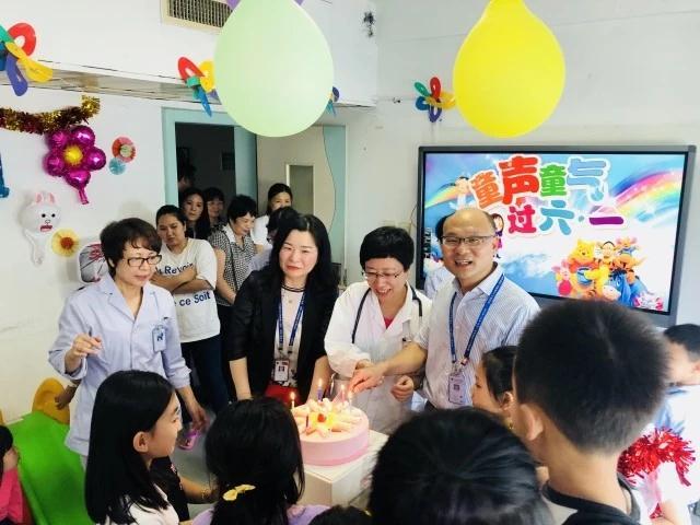 应斌宇副院长、儿童遗传代谢与内分泌科主任单晓鸥、儿科科护士长贾玉双、门诊部副主任汤晓敏陪孩子们共度六一。吃蛋糕、跳舞、做游戏,大人和孩子们都玩得不亦乐乎!