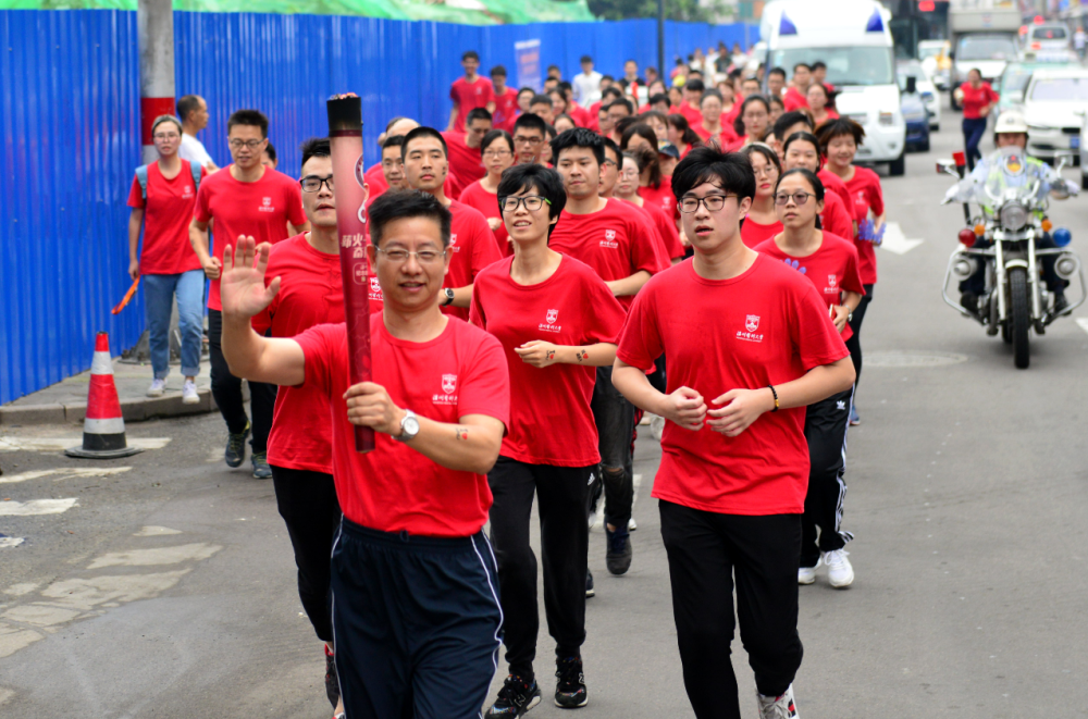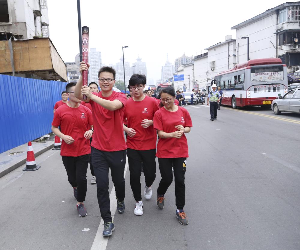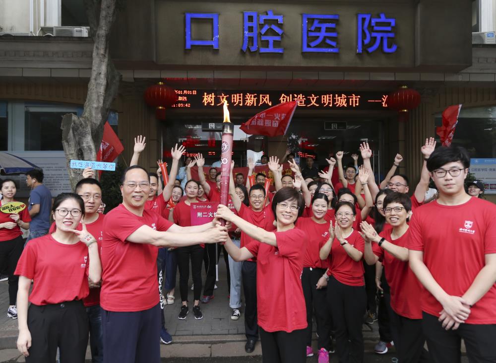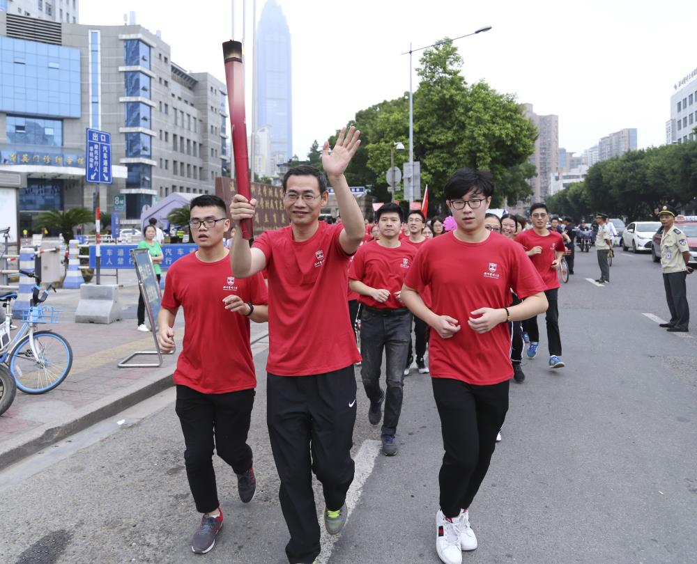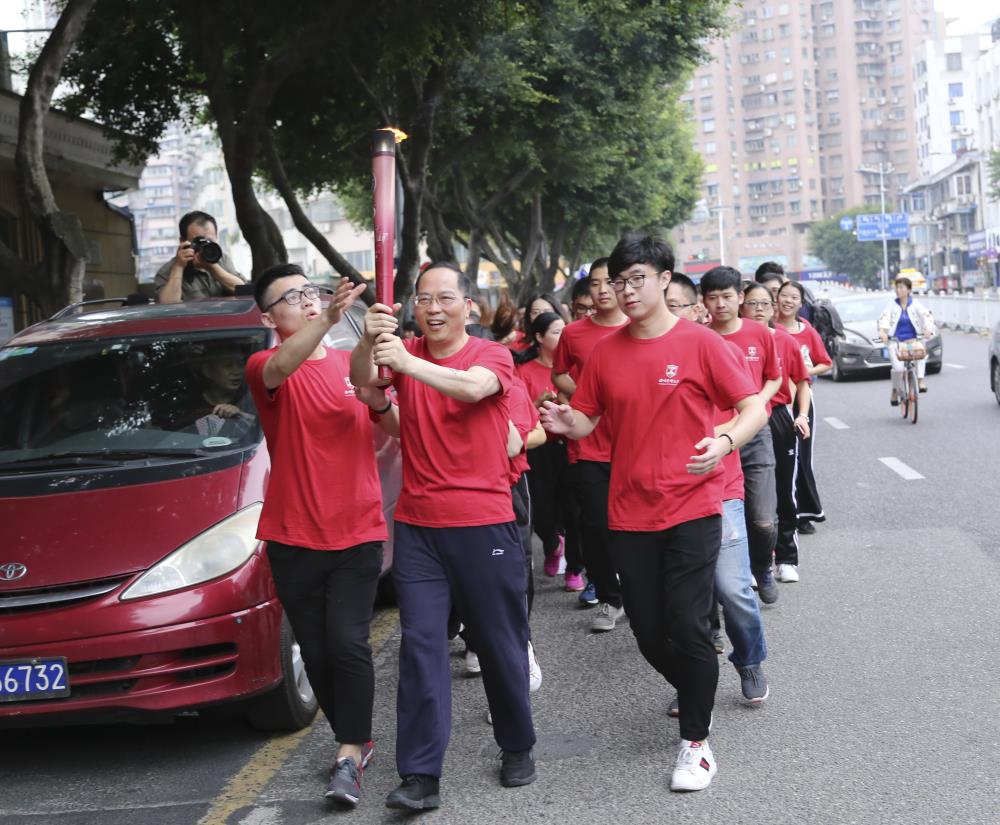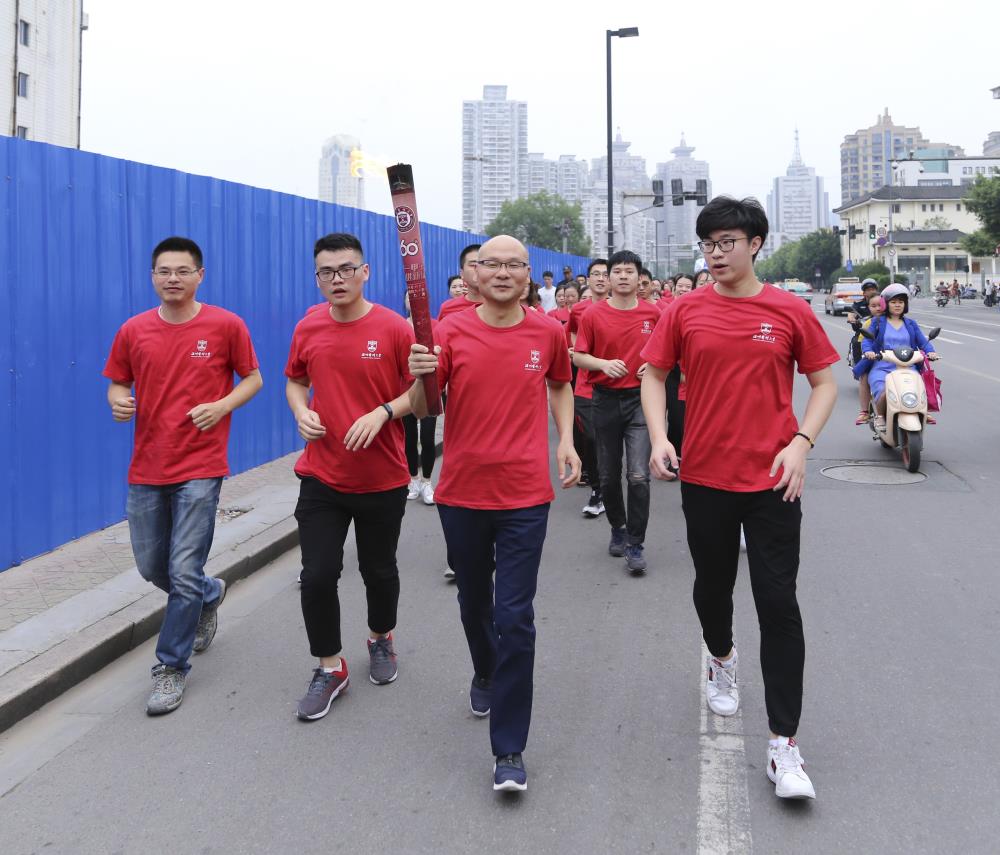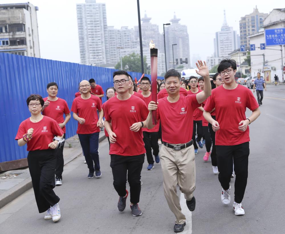 我院院长连庆泉、党委书记褚茂平带队的附二火炬接力手共计11人,与接力跑的队伍一起完成了从附属口腔医院到体育中心五号门的接力跑。
