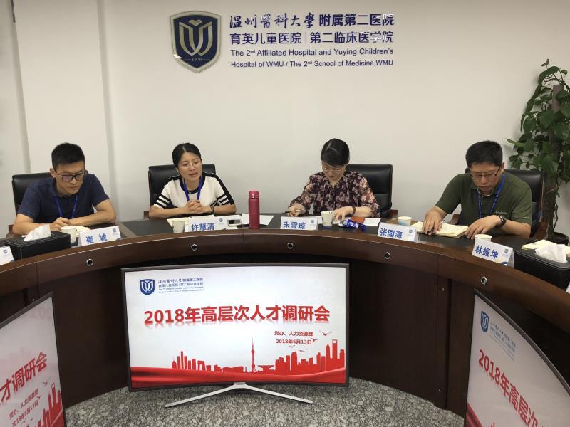 人才是医院发展的第一资源。为深入了解我院高层次人才工作生活情况,充分发挥高层次人才在医院建设发展中的重要作用,6月13日,我院召开了2018年高层次人才调研会,许慧清副书记、朱雪琼副院长、相关职能处室负责人和医院高层次人才出席了会议,会议由朱雪琼副院长主持。