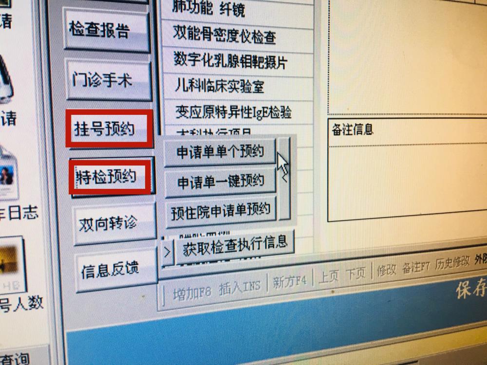 特检预约:点击菜单,为患者选择相应特检项目,可以进行单个项目的预约,也可以多个项目一键预约。