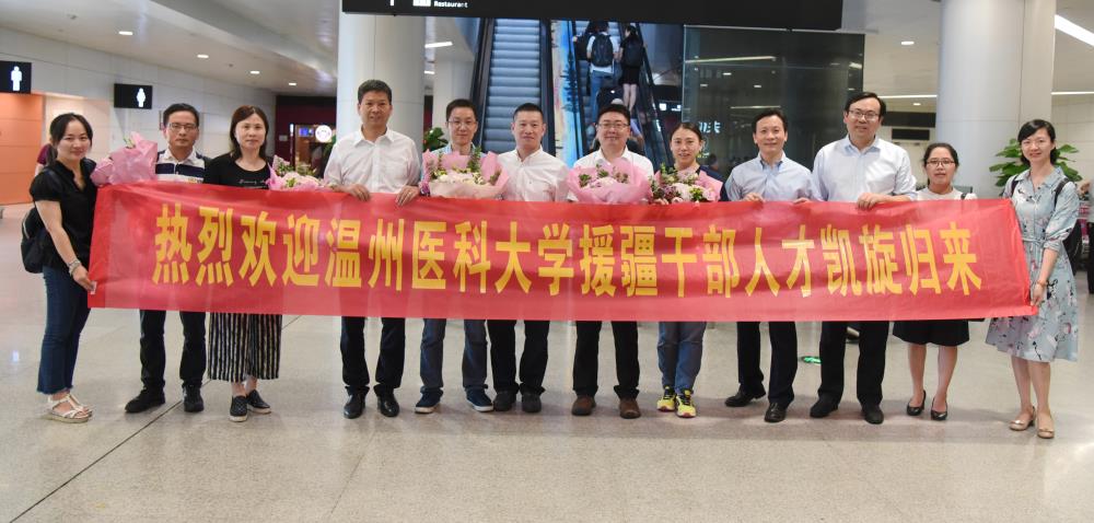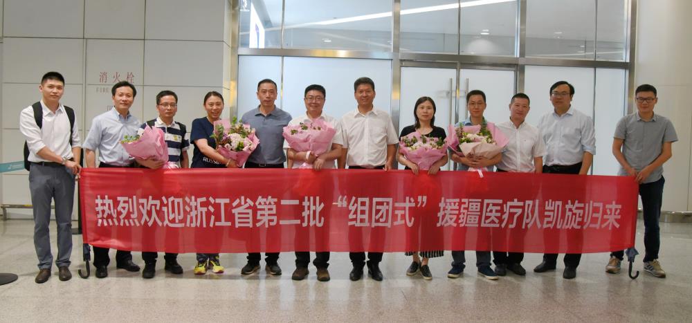 7月6日晚,无愧于浙江人民的重托,满载着新疆人民的深情,我省第二批“组团式”援疆医疗队凯旋。医疗队专家我院呼吸内科吴成云主任和儿童神经内科林忠东主任圆满完成为期一年半的医疗援建工作,从新疆阿克苏载誉而归。