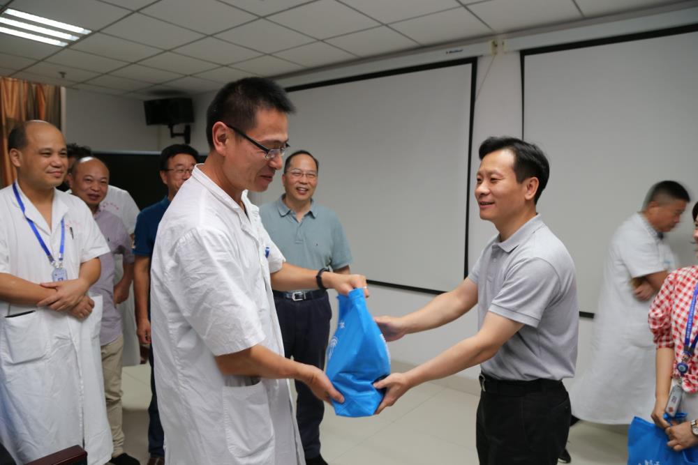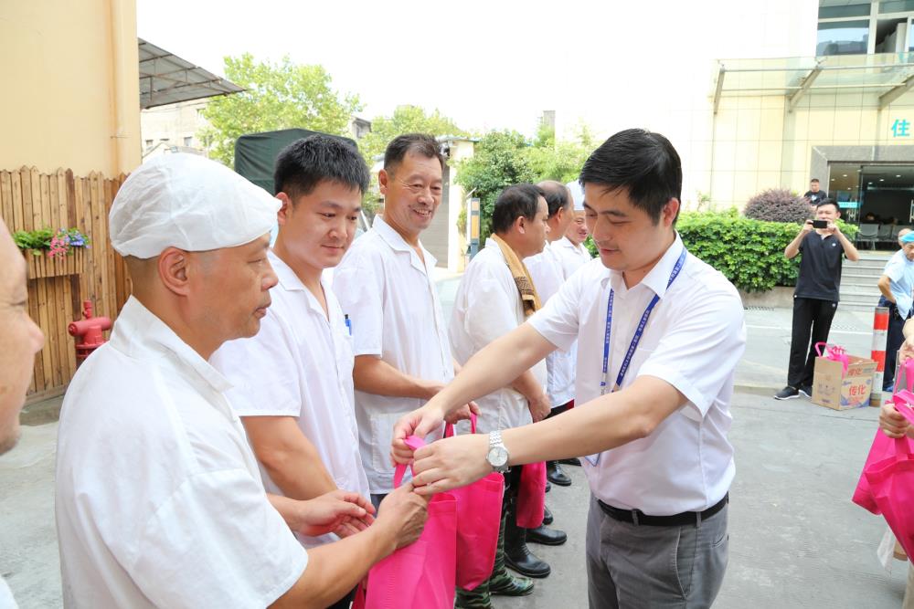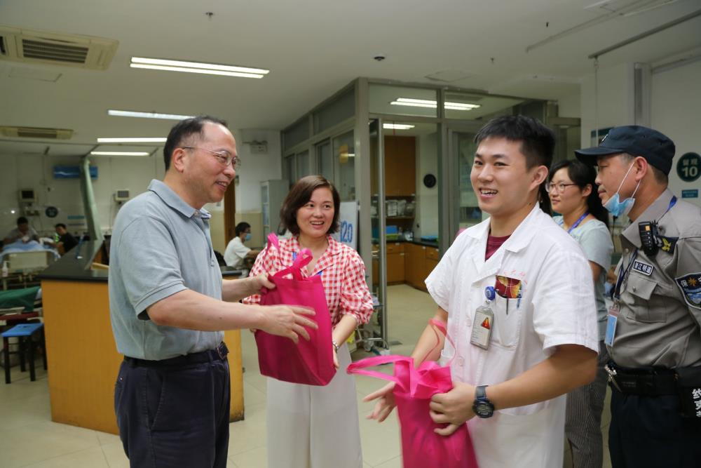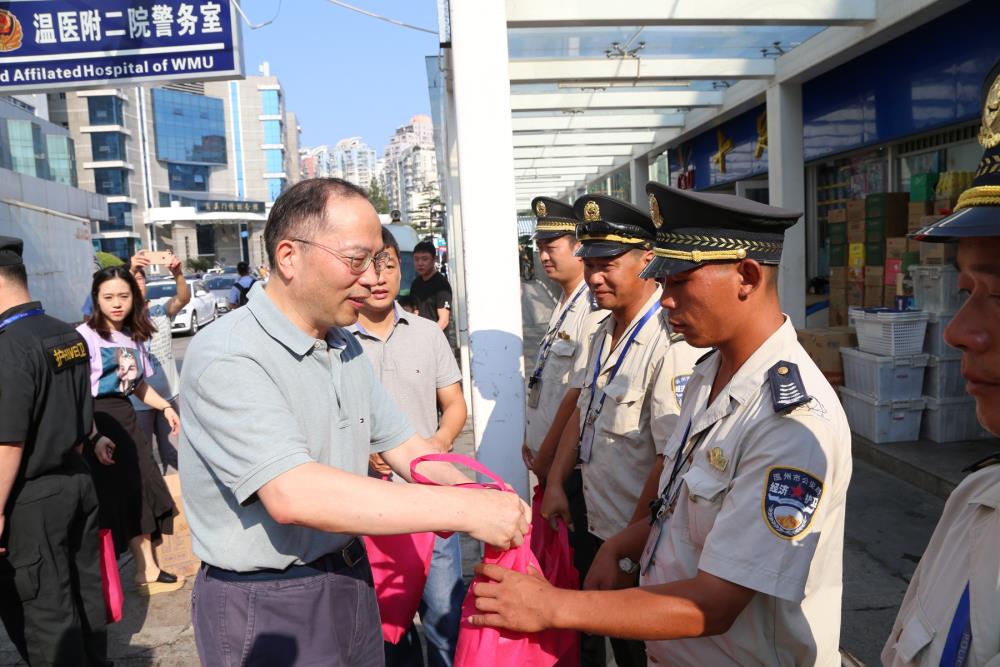 昨天,我市进入今夏第9个高温日,高温酷暑也考验着我院医疗工作安全有序运行的每一个细节。两日来,连庆泉院长、阮积晨副院长、陈先建副书记、应斌宇副院长、沈贤副院长、金明广总会计师等院领导深入基层一线,向冒着高温辛勤工作的全院不同岗位职工表示敬意和慰问。医院工会为此次活动特备了1200份消暑慰问品,为历年来慰问覆盖辐射面最大的一次。瑶溪综合办也置办了455份消暑慰问品,将来自医院的关怀惠及瑶溪院区的施工工人。
