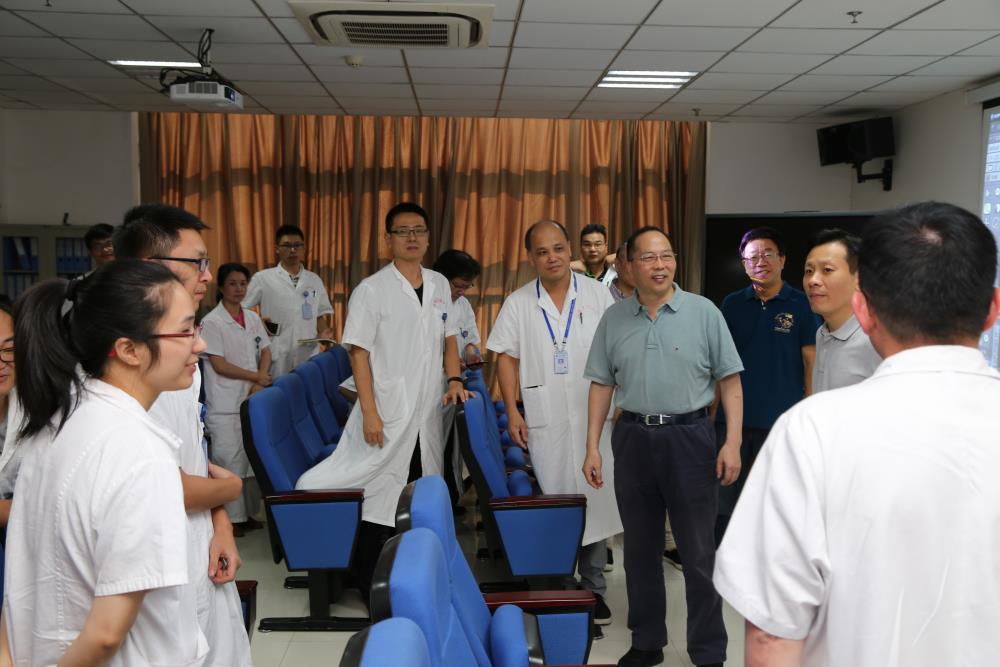 随后,一行人还走访了成人急诊科,当了解到因天气酷热对人体产生极大影响,急诊科的收治压力有增无减时,连院长一面鼓励医务人员要再接再厉,不负群众生命所托,一面叮嘱大家要做好防暑降温工作。