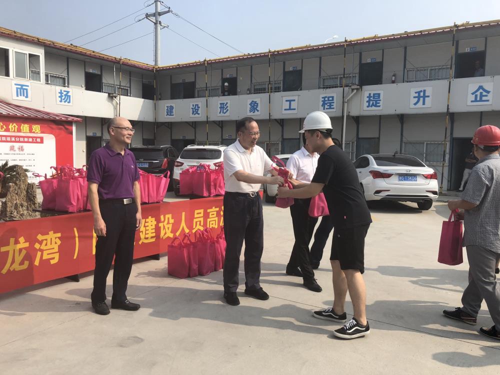 与此同时,远在20余公里外的我院瑶溪院区的施工现场,慰问活动同样火热。连庆泉院长、阮积晨副院长、应斌宇副院长、金明广总会计师等院领导,在瑶溪院区建设相关职能部门的陪同下,来到建设工地现场,看望慰问炎炎夏日里仍坚守岗位的一线工作人员,向奋战在工程建设前线的职工、监理人员、跟踪审计代表及施工单位人员等送去455份来自医院的关怀和高温下的慰问。