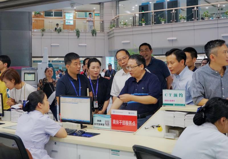 会后,马伟杭副主任一行实地走访了门诊大厅、住院准备中心、医院服务中心,视察我院门诊预约、住院手续办理、麻醉前会诊、医患沟通等现场情况,与我院相关部门人员针对优化办事流程进行了交流讨论。我院在空间狭小、业务用房紧张的情况下,仍努力做了大量的改革工作,尤其是以疾病或系统为引导的门诊区域划分、住院准备中心的建设、医院服务中心的设置等,大大地方便了群众,第一时间让老百姓感受到了改革的成效。我院在“最多跑一次”改革中的主动性和自愿性,得到了马伟杭副主任的充分肯定。