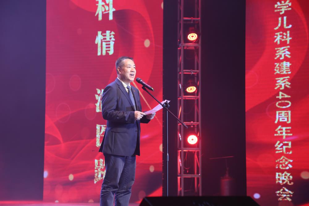 晚会现场,孙锟院长作为温州医科大学儿科系85届毕业生、温州医科大学儿科校友会首任会长代表所有曾经的温医学子发表致辞。他指出,为母校儿科系的发展壮大感到骄傲和自豪的同时,也更加地希望能够借此之机,发挥各方宝贵资源,为母校儿科学科建设搭建更良好的交流平台,共同促进我校儿科学的进一步发展壮大。