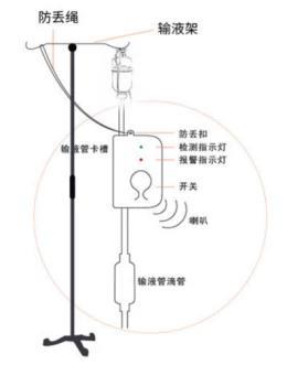 警报器的使用方法很简单,只要将输液管卡在输液器的卡槽内,打开开关后提示“滴”便进入检测状态,当管内液体从无到有的变化时,报警器就会间断地发出“滴”的提示音,最后按一下开关,输液器就会停止报警。