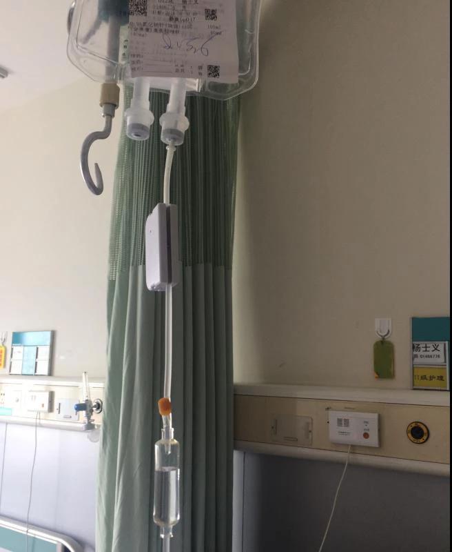 病人B:“很方便啊!再也不用盯着输液,省了很多心,真是神器啊!之前有一次我们三个人在场,都没人发现液体输完了,后来才发现,针都堵了,又要重新打,真是遭罪啊,有了这报警器提醒,再也不用担心这样的事发生了!”