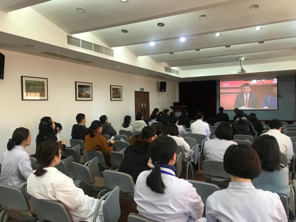 2018年12月18日上午10时,庆祝改革开放40周年大会在人民大会堂举行。中共中央总书记、国家主席、中央军委主席习近平出席大会并发表重要讲话。我院党委组织医院领导班子、全院党员干部、教职工、学生近千人,集中收看大会直播盛况,共同感受改革开放以来国家取得的巨大进步。