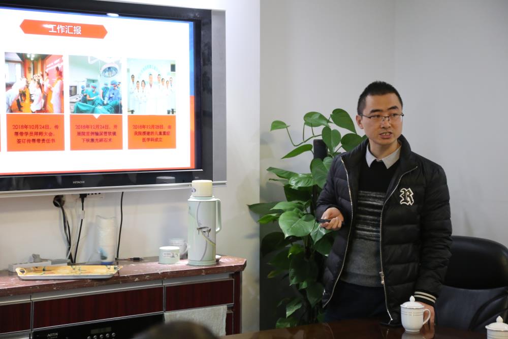 紧接着,援疆干部梁亚峰代表我院派遣的第九批第二轮援疆专业技术人员,详细介绍了上阶段“以院包科”援疆工作开展情况和2019年的工作计划。