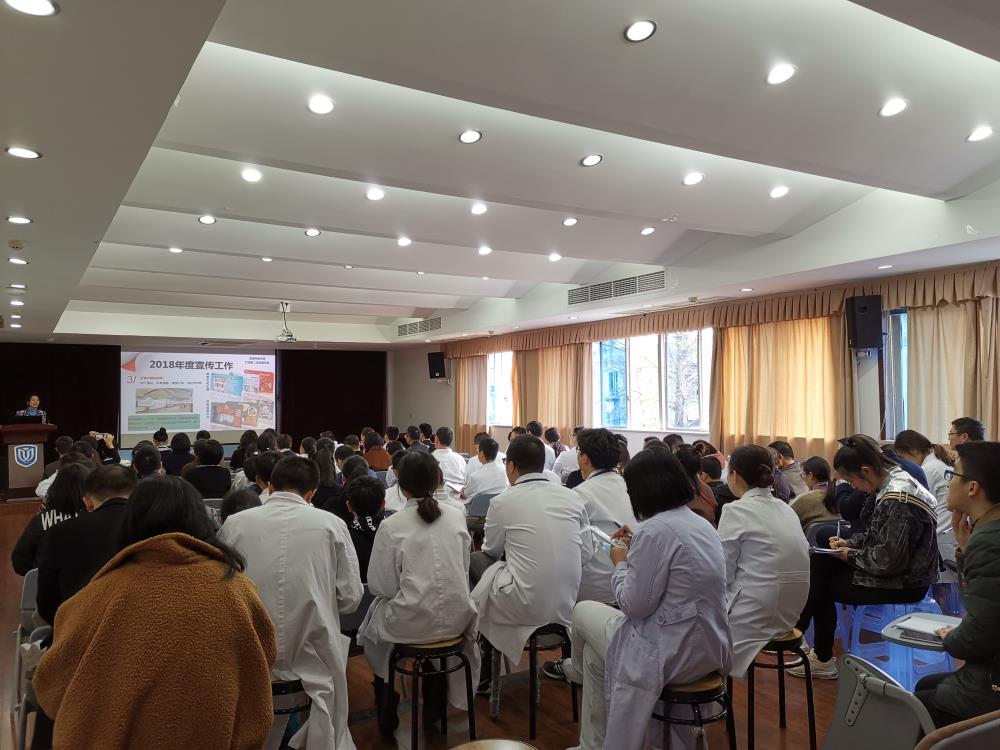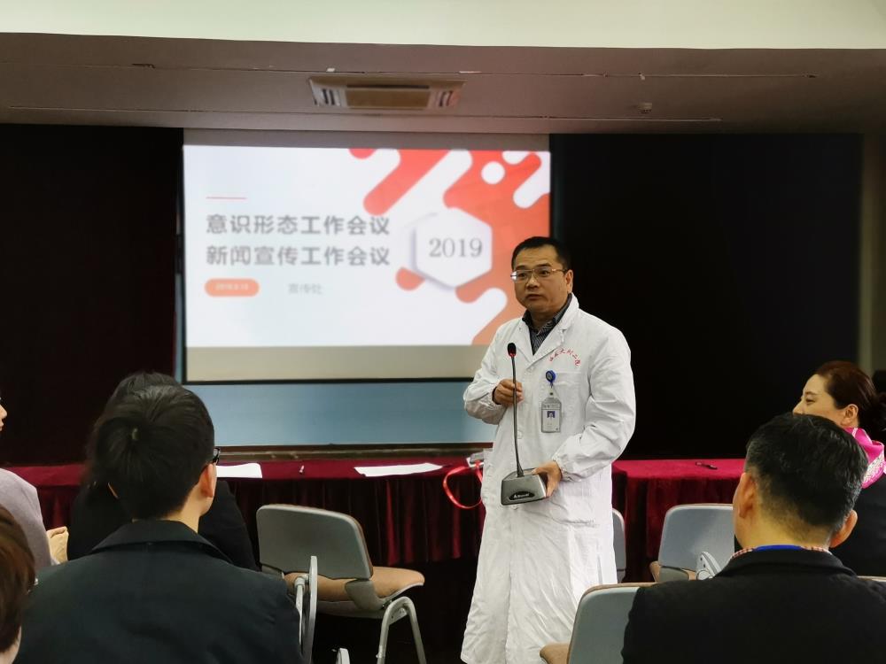 新时代下的医院宣传工作,要切实强化意识形态领域阵地建设,坚持正面的舆论导向,牢牢把握习近平新时代中国特色社会主义思想这一主线和灵魂。为进一步强化新闻宣传及意识形态工作,加强新闻宣传干部队伍建设,不断拓展宣传工作新途径,3月13日下午,我院召开了2019年宣传工作会议,党委副书记许慧清、获奖代表、全院各科室宣传员等百余人参加了会议。会议由宣传处副处长崔虓主持。