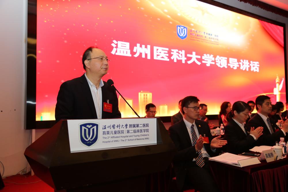 温州医科大学党委副书记吕一军应邀出席会议并作了讲话。他充分肯定了医院过去一年取得的成绩,并指出,面对新形势新任务,学校将一如既往地支持医院加快发展、冲击国内一流。同时,也要求医院深入学习贯彻落实习近平新时代中国特色社会主义思想和党的十九大精神,全面落实公立医院党委领导下的院长负责制,坚持改革创新,坚持特色发展,坚持内涵提升,深耕厚植有潜力、有基础的学科,持续提高教育教学品质,进一步加强党风廉政建设、作风行风建设,进一步提升医疗服务质量和水平,优化患者就医体验,努力实现医院高质量内涵式发展。