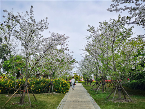 在这春花盛开的日子里,绵绵细雨也阻挡不住市民的热情,徜徉花海芬芳馥郁,给这美丽的瓯江口新区增添了无限魅力。