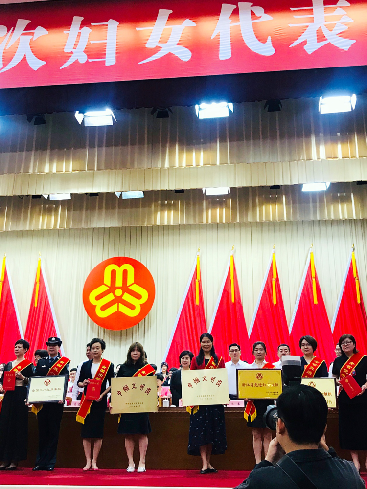上午9时,大会在庄严的《国歌》声中拉开帷幕。会上表彰了2018年度各级巾帼文明岗、巾帼建功标兵、三八红旗手、三八红旗先进集体等先进集体和个人。张春梅主任代表温州医科大学附属第二医院护理部接受全国巾帼文明岗授牌表彰。