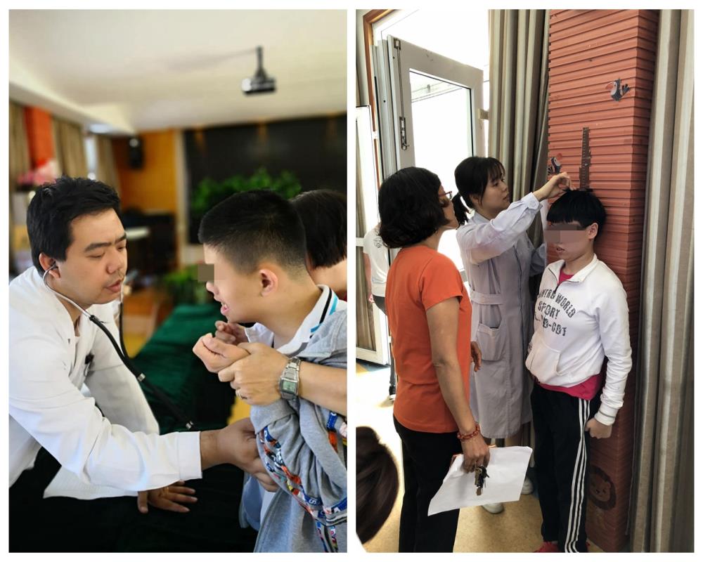义诊当天,医疗队一行人免费为孩子们开展内外科体检,建立健康档案,其中儿童外科赵一鸣主任为每一个孩子细心查体,将检出异常的患儿登记入档案并热心联系医院进行后续跟进;儿童心血管科吴蓉洲主任也通过常规查体与心脏听诊,为检出心脏杂音的患儿预约心脏超声及心电图随访。各科护士则各司其职,为每一位患儿登记身高、体重,评估孩子的生长发育情况。
