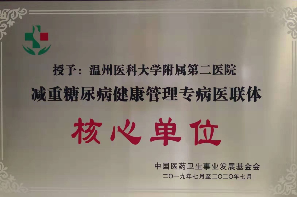 我院为首批“减重糖尿病健康管理专病医联体”核心单位。为充分发挥各医院交叉学科、技术、专家等资源优势和区域优势和影响力,实现优势互补、资源共享,使双向转诊模式步入合作共赢的轨道,为我国人民提供优质、便利、高效、安全的医疗卫生服务,由中国医药卫生事业发展基金会牵头,中日友好医院、上海市第六人民医院等15家医疗机构共同组建“中国医药卫生事业发展基金会减重糖尿病健康管理专病医疗联合体”。