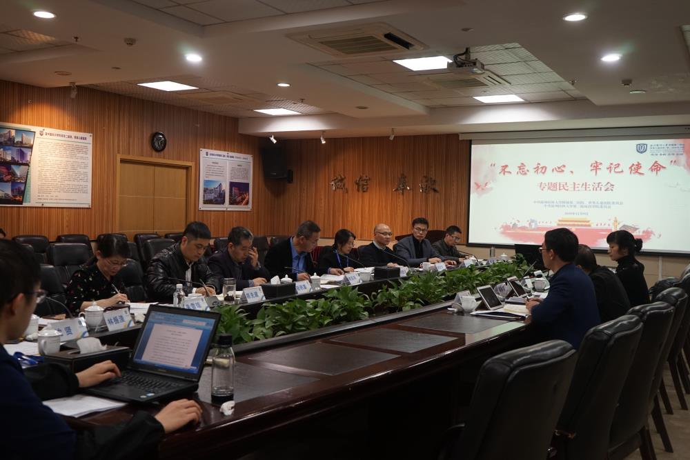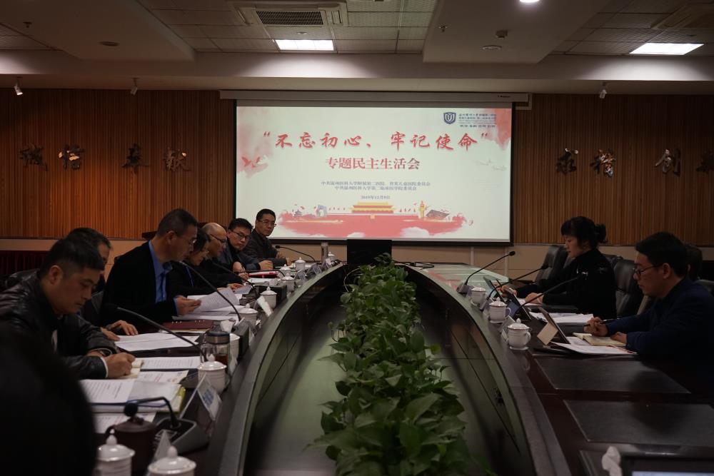 12月9日下午,医院领导班子召开“不忘初心、牢记使命”专题民主生活会。温州医科大学党委副书记程锦国、宣传部副部长王建波及纪检监察室纪检监察科科长阮晓丹到会指导。院领导班子全体成员参加会议,党政综合办公室主任列席会议。会议由院党委“不忘初心、牢记使命”主题教育领导小组组长、党委书记褚茂平主持。