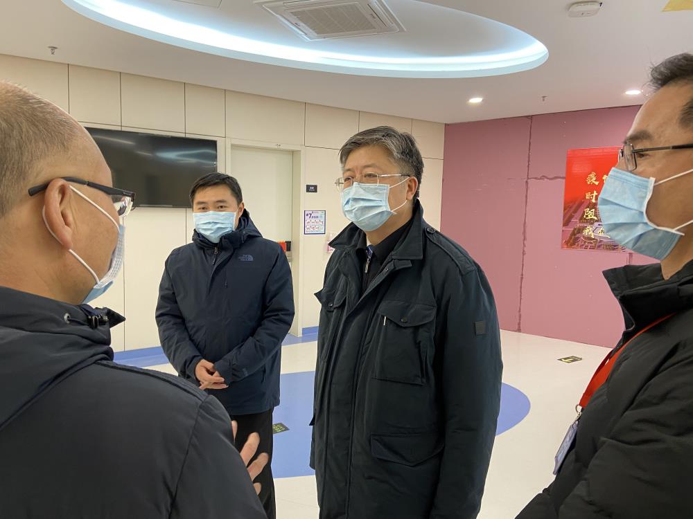瓯江口院区作为浙江省级新型冠状病毒肺炎患者定点收治医院,被网友亲切地称为温州版“火神山”医院。连日来,我院瓯江口院区从改造、试运营到正式投入使用,均得到了社会各界的广泛关注和大力支持。温州医科大学校长李校堃、副校长金胜威今天也来到了瓯江口院区,现场指导患者收治工作并慰问了一线的医护人员。我院党委委员、副院长王向阳,组织员应斌宇向校领导介绍了相关情况。