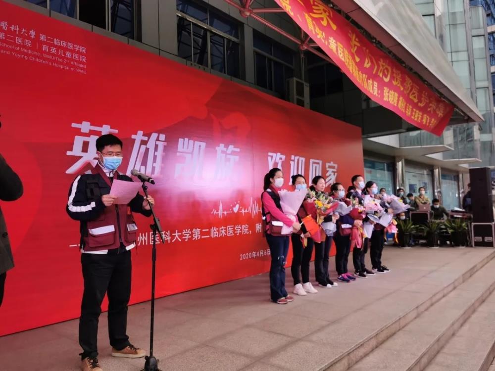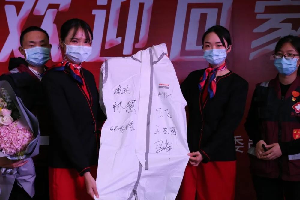 “七十多天以来,你们日夜奋战,护佑生命,不负重托,不辱使命,圆满完成了党和政府交给你们的任务。我们附二人时刻关注你们的战‘疫’工作,日夜牵挂身在异乡的你们的安危冷暖。希望大家回家后安心休息,与家人团聚,好好调养。”
