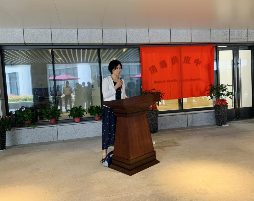 最后,各位领导共同举行揭幕仪式,沈贤院长宣布消毒供应中心正式启用。