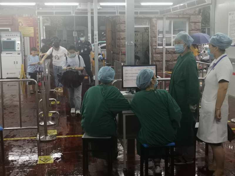 鹿城院区预检人员坚守岗位,新冠疫情防控工作并没有因台风而搁置