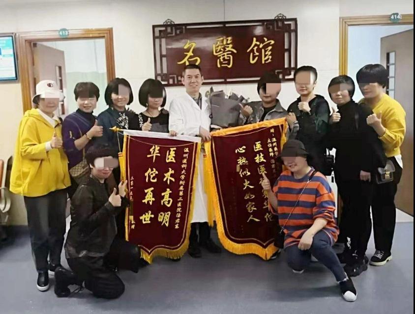 在去年年底的一个工作日,我像往常一样下了门诊,当我走出诊室的时候,突然从门口的椅子上齐刷刷站起来10位患者,她们都是千里迢迢从不同的地方赶来。她们看到我,激动地迎上来递上两面锦旗,同时把一束鲜花送到我的手上。