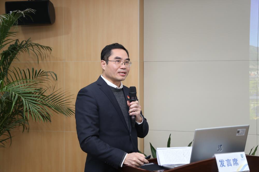 温州医科大学党委副书记陈培根发言,他强调:要坚持党建引领,高度重视医院党建工作;要加强班子建设,夯实组织基础;要重视党支部建设,提高党支部活力;要重视“一岗双责”,切实加强党风廉政建设;要着力培育特色文化,积极打造医院文化品牌。