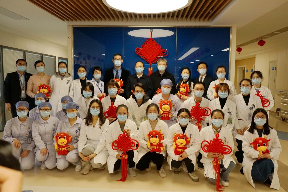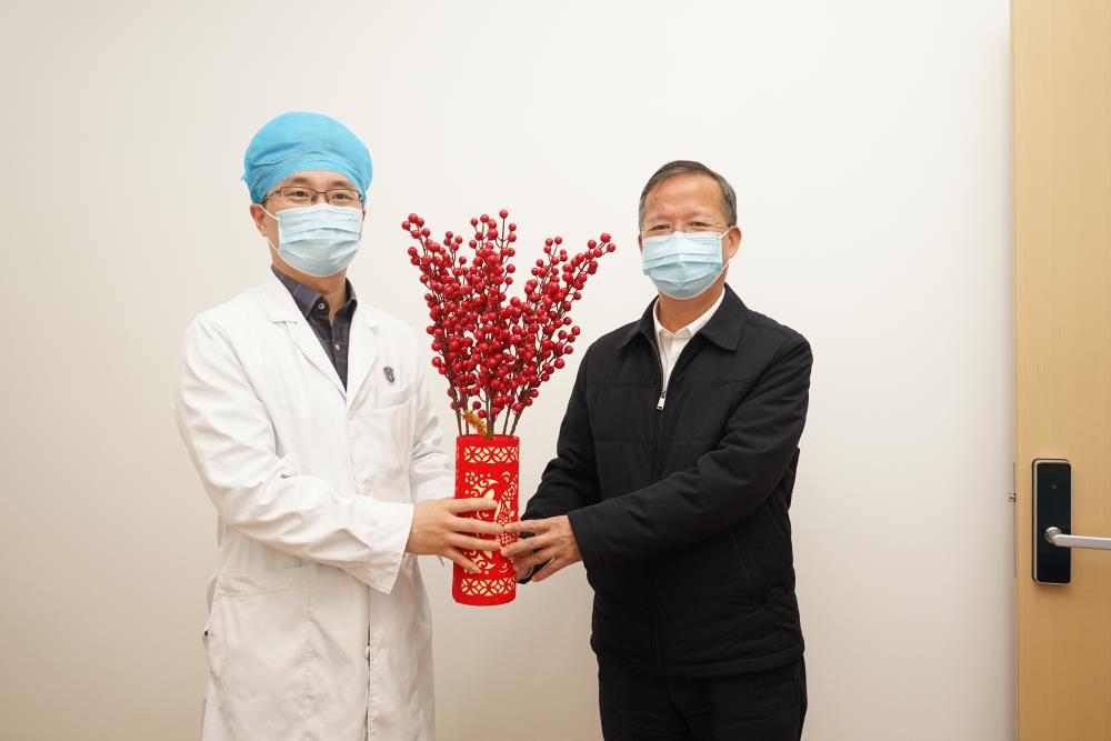 在住院部十五楼血液肿瘤科,吕一军书记、李校堃校长亲切慰问了林颖主任带领的医护团队,询问了解春节期间病区的工作安排,指出春节佳节,更要确保医疗安全,并对医护人员一以贯之的坚持付出表示衷心的感谢。