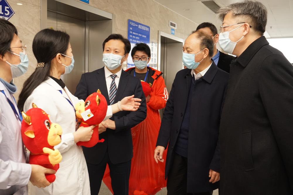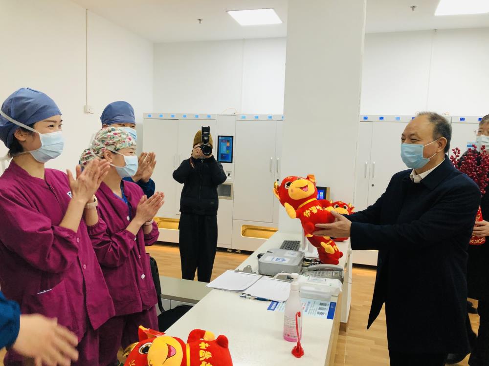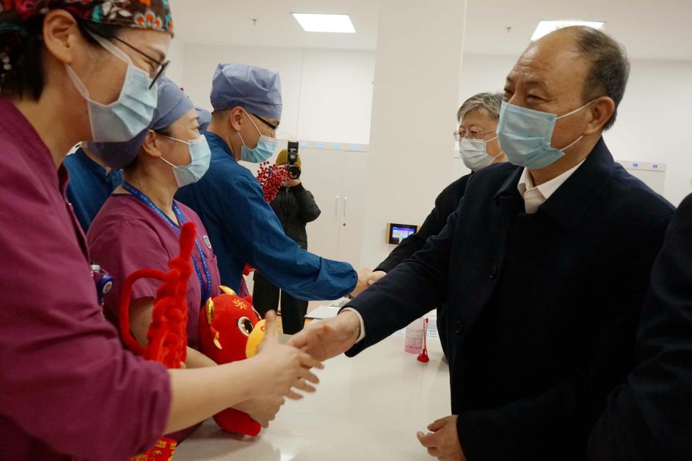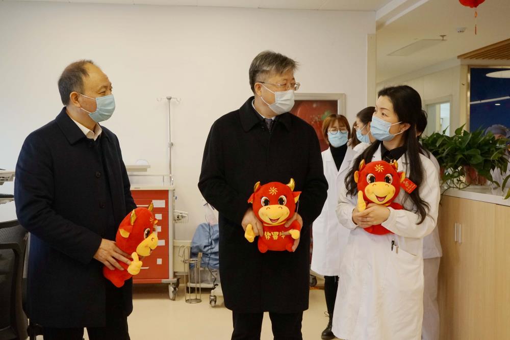 每到一处,校领导都与医护人员亲切握手,感谢他们为患者解除痛苦、为人民群众的健康做出贡献,并嘱咐大家要注意劳逸结合,保重身体,祝福我院医务人员新春快乐、阖家幸福。对于过去一年附二人众志成城抗击疫情,圆满完成多院区启用工作,同时全体附二人积极适应新格局,共促新发展的精神和所取得的良好成效,吕一军书记给予了高度肯定,并希望在牛年,附二人能继续保持良好工作状态,发扬抗疫精神,把医院建设得更好,更好地服务人民群众!