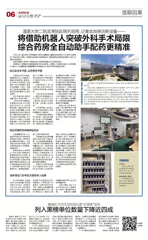 10月31日,温州医科大学附属第二医院、附属育英儿童医院龙湾院区(以下简称“龙湾院区”)将正式投入使用。龙湾院区的后期工程进展如何?将提供哪些优质的医疗服务?昨天,记者进行实地探访。