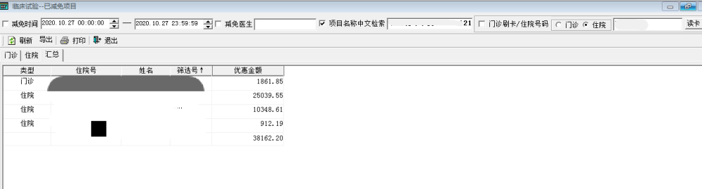 1、机构办财务管理李老师接到研究者/CRA通知金额核对无误后,导出受试者信息脱敏版优惠汇总表及明细。