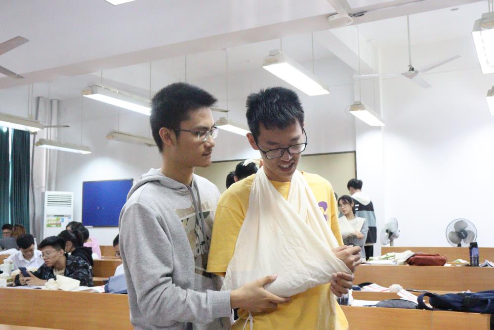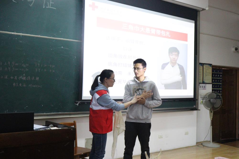 自报名通知发出开始,同学们反响强烈,积极参与。活动流程分为上午的课堂教学和下午的考核环节。课堂上,红十字会的老师就红会运动基本知识、心肺复苏术、创伤救护和包扎固定等内容进行了介绍,并对心肺复苏术和创伤救护进行了现场演示。对于急救中的关键环节,老师进行了专门的的动作拆解和误区解读,将急救方法直观地呈现在同学们眼前。同学们也热情高涨,在认真听讲的基础上练习实操,在老师的纠错帮助下不断改进,熟练掌握了基本的自救互救方法,并在下午的考核环节中发挥出色,全数通过了考核。