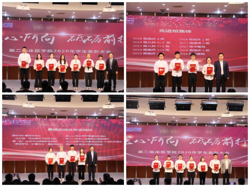 大会宣读了2019-2020学年度国家奖学金、国家励志奖学金、省政府奖学金、学业奖学金、三好学生、优秀学生干部、黄达枢儿科奖学金、至诚奖学金等获奖个人名单,以及优秀班集体、风采团支部、优秀暑期社会实践队等优秀集体名单。学院领导为获奖学生代表颁发证书。