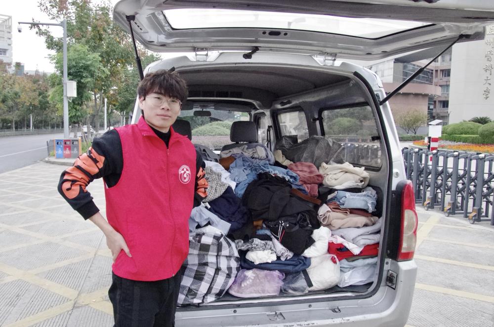活动当天,志愿者顶着寒风积极宣传,鼓励同学们捐赠闲置旧衣物。许多同学通过前期线上宣传得知了活动,在当天带着整理好的衣物前来。不少同学听了志愿者的介绍后特地回寝室整理出要捐献的衣服。有些大一学子甚至还没过冬就捐出了冬衣,其中一名女生还耐心地把衣服一件件小心放好,贴心地标记了尺码。没有闲置衣物捐赠的同学也在活动当天留下了联系方式,并告知志愿者们如有类似活动可以联系自己。寒风并不能阻挡同学们献出爱心的温情,在志愿者的热情宣传和同学们的积极参与下,活动现场捐献人员络绎不绝,装衣物的布袋累增不断。