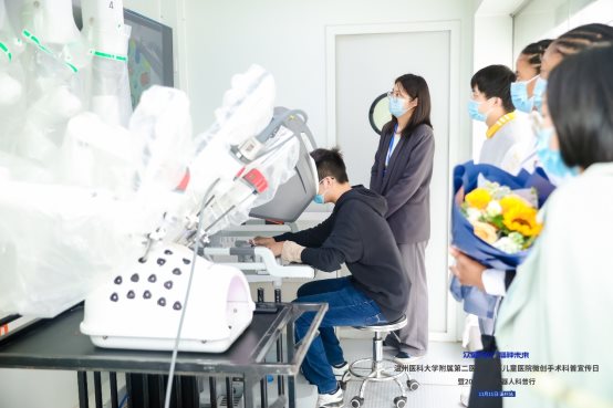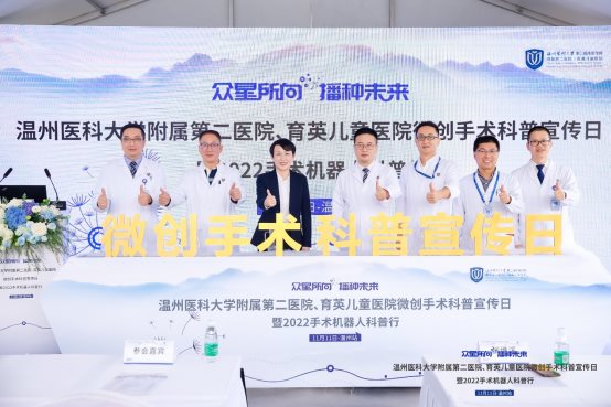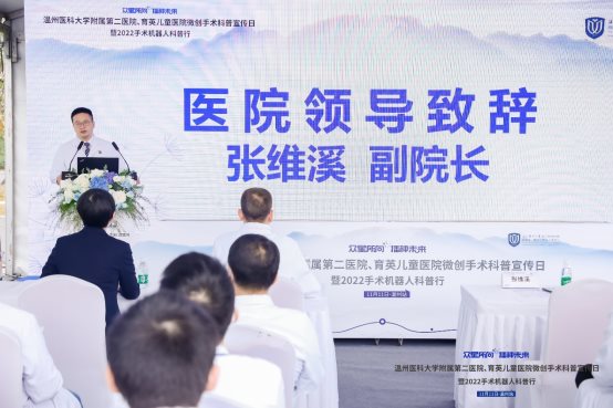 温州医科大学附属第二医院、育英儿童医院副院长张维溪在致辞中表示,温医大附二院积极构建多院区医疗差异化布局,现有龙湾、鹿城、瓯江口三大院区,每个院区都有鲜明的专科发展定位,尽可能地满足老百姓精准就医的需求。自2022年3月引进达芬奇手术机器人以来,目前已开展300多例机器人手术,涉及泌尿外科、肝胆胰外科、妇科、儿童外科、胃肠肿瘤科、肛肠外科、胸外科等多个学科。举办此次手术机器人科普行活动,是温医大附二院紧跟医疗科技快速更迭、不断推进外科手术精准化、微创化发展的一个重要标志。