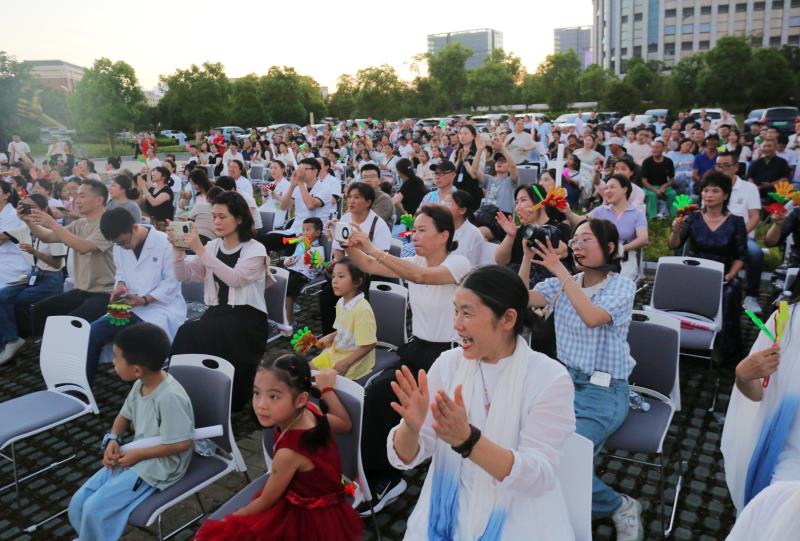 动感的非洲鼓、优美的禅舞、孩童清澈的歌声……8月18日晚,温州医科大学附属第二医院瓯江口院区的草坪上星光与音符交织,一场“医路星光 音爱而生”为主题的医患同乐户外音乐节以音乐为媒,让医护人员、患者与家属,以及社区居民代表、辖区学校师生代表等欢聚一堂,搭建起医患之间、医社之间情感交流的温馨桥梁,共庆第八个中国医师节的到来,共谱温暖乐章。