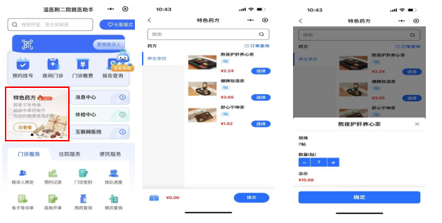 第二步:首页点击【互联网医院】,点击【特色处方】选择【养生茶饮】