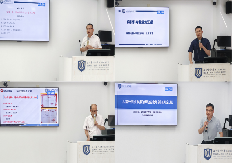 会议在严肃而热烈的氛围中进行。在院内重点专业基地专题汇报环节,各基地负责人依次上台,围绕师资队伍建设、过程管理、培训质量与创新亮点等方面进行了全面而深入的阐述。接着,国家住培重点外科专业基地进行了基地建设和迎评工作汇报。最后,国家专科医师规范化培训(专培)基地集中展示了规范化培训建设成果与特色教学文化等。