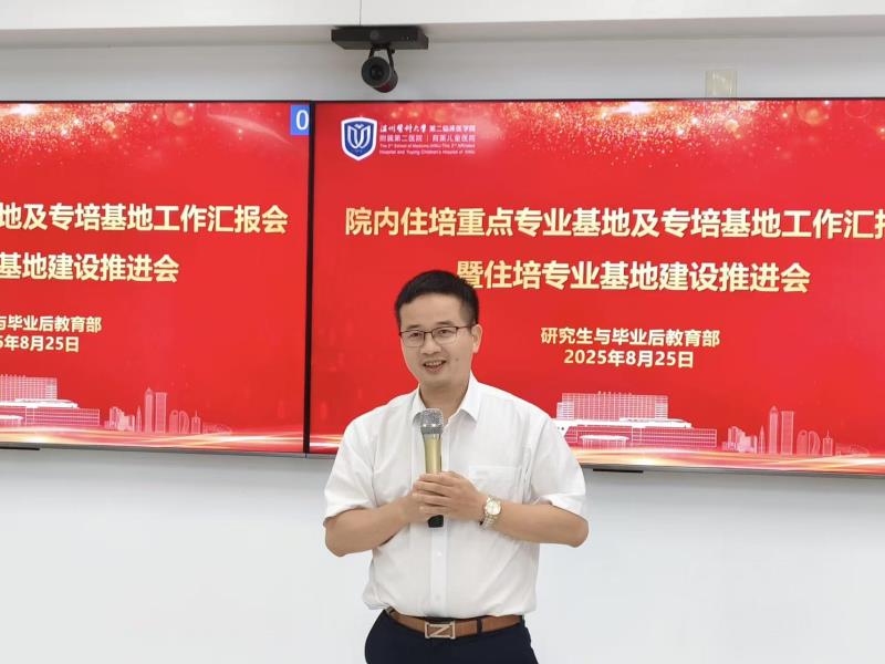 为全面检验住院医师规范化培训(以下简称“住培”)工作成效,以评促建,树立标杆。8月25日下午,我院在龙湾院区隆重召开院级住培重点专业基地及专培基地工作汇报会暨住培专业基地建设推进会。张维溪执行院长、研究生与毕业后教育部(研教部)负责人、各住培专业基地代表共同出席会议。
