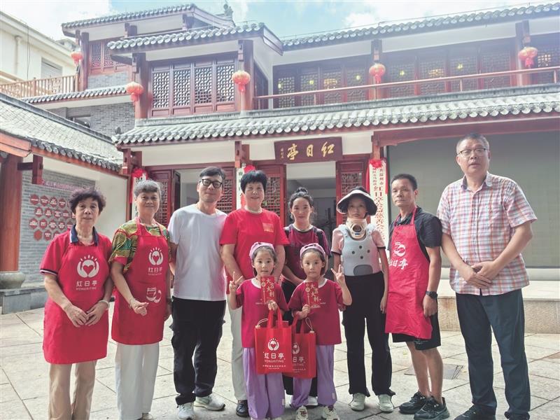 桑卓在温治疗期间,都待在温医大附二院瓯江口院区,她的姐姐与两个双胞胎外甥女一直陪伴着她。8月29日上午,受温州都市报陈忠慈善工作室和红日亭的邀请,她们到红日亭当志愿者。红日亭负责人孙兰香给她们讲述了红日亭“小亭大爱”的故事,请她们吃爱心餐,红日亭还给双胞胎姐妹送上爱心礼物和每人1500元助学金。