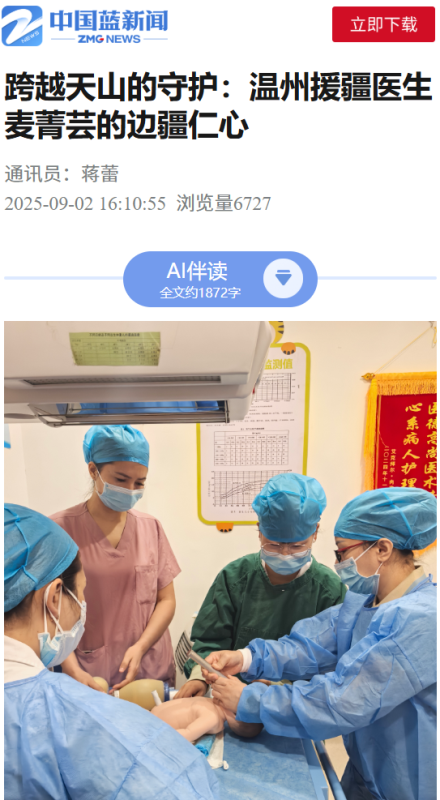 在新疆阿克苏这片广袤的土地上,来自温州医科大学附属第二医院的援疆医生麦菁芸,用精湛的医术和无私的奉献,为边疆的新生儿们筑起一道坚实的健康防线,也是深化东西部协作、促进民族交往交流交融、筑牢中华民族共同体意识的生动实践。