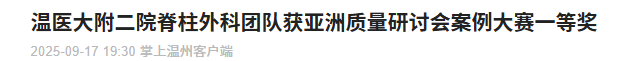 9月12日至13日,第十届亚洲质量功能展开与创新研讨会暨质量改进与创新案例大赛在杭州举行,温医大附二院脊柱外科“育英脊梁工程”团队带领的创新项目“应用HFMEA优化青少年重度脊柱侧弯全病程管理流程”,在数百来个参赛项目中脱颖而出,夺得一等奖。