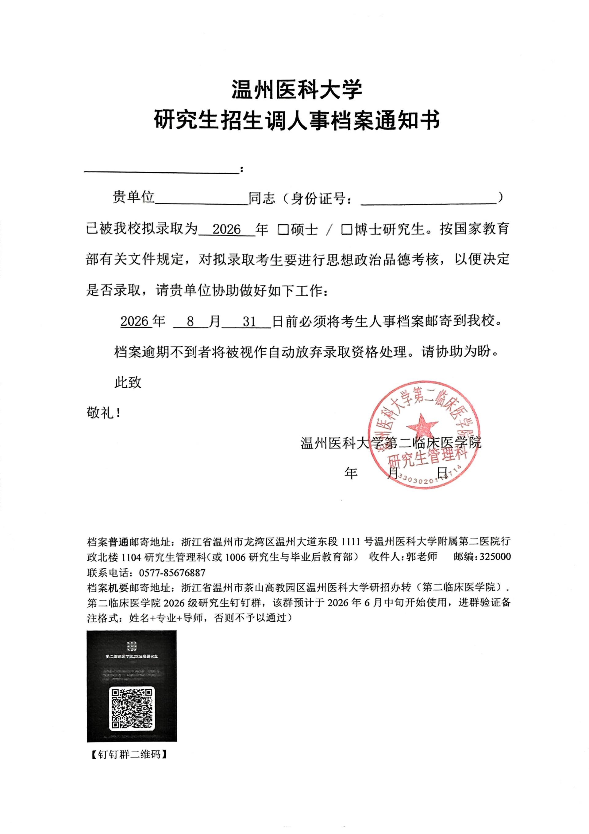 2026年硕士研究生调档函