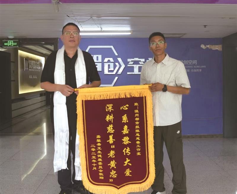一面写着“心系嘉黎传大爱,深耕慈善‘老黄忠’”的锦旗,近日由西藏嘉黎县卫健委党组书记、主任多吉顿珠一行,专程送至温州都市报陈忠慈善工作室。这面锦旗与一封情真意切的感谢信,共同见证了该工作室在雪域高原上十年如一日的爱心耕耘。