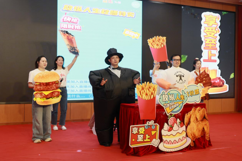 “冰淇淋200大卡热量,为血管添堵做贡献”“每天一杯奶茶,助力胰腺罢工”“现在下单(脂肪套餐),赠送恐怖体检报告一份,超大套餐直接送ICU直通卡”……活动现场,这场以直播为形式的关于脂肪危害科普的情景喜剧收获阵阵笑声与掌声。