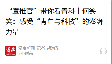今年世界青年科学家峰会(简称“青科会”)特推出“网络达人探青科”活动,我市三名“网红”医生——温州医科大学附属第一医院心脏外科主任、心脏重症监护室(CCU)副主任(兼) 王珏,温州医科大学附属第二医院、育英儿童医院新生儿科主治医师何笑笑,温州医科大学附属第二医院、育英儿童医院消化内科主治医师缪磊受邀作为“青科会宣推官”,一起见证科技为医疗行业以及健康生活注入的蓬勃活力。